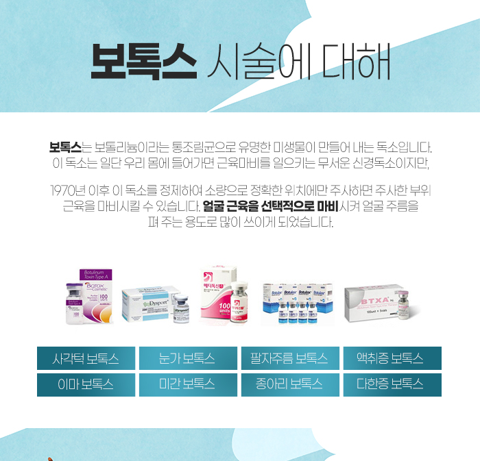 돌아와서 보톡스에 대해 말해보자면 수술적 기법 없이 짧은 시간 안에 받을 수 있는 시술로, 시술 후 바로 일상생할을 하실 수 있습니다. 그래서 찾으시는 분들이 많은데요.